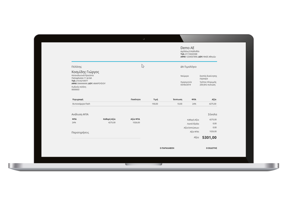 Απαλλαγείτε από τα χαρτιά και τις χειρόγραφες καταχωρήσεις. Αυτοματοποιήστε την τιμολόγηση, την παρακολούθηση των εξόδων και κάθε άλλη δραστηριότητά σας, με λίγα μόνο κλικ.